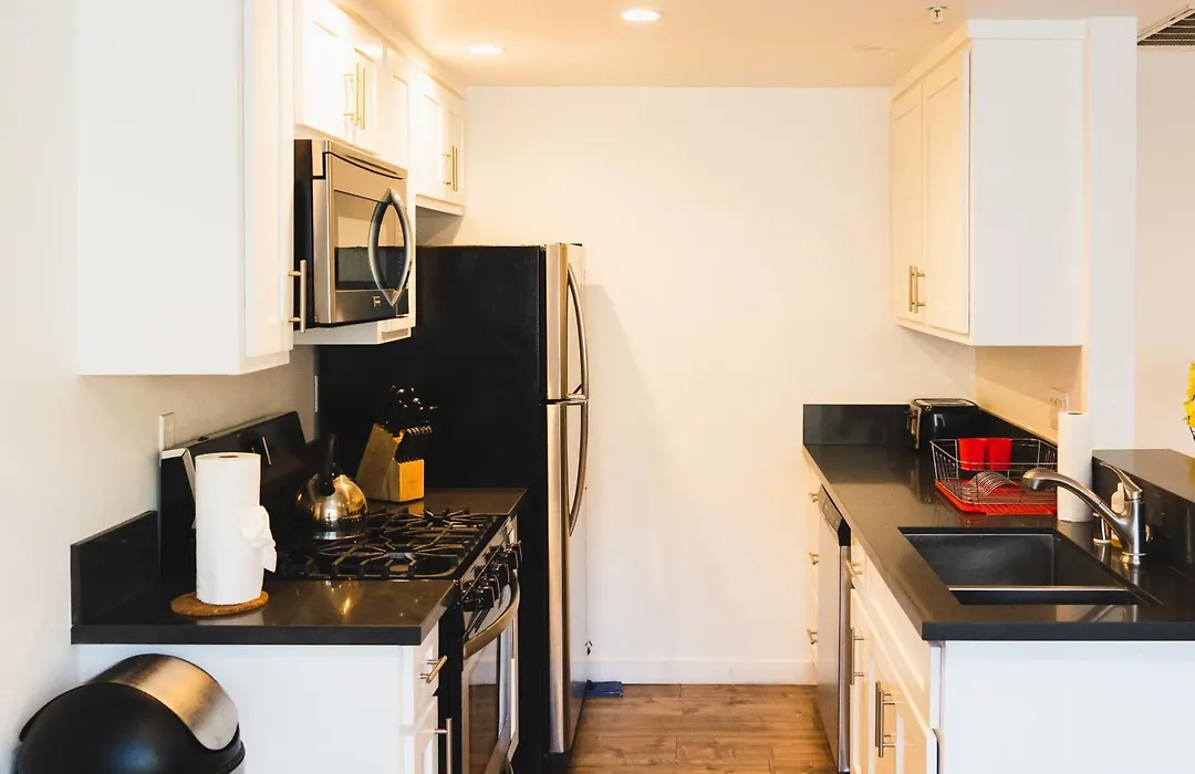 El Chic Large 1 Bedroom Apartment In Koreatown With Dining Area Free Gated Parking tiene un lavaplatos y un horno en una cocina bien equipada. El Chic Large 1 Bedroom Apartment In Koreatown With Dining Area Free Gated Parking está justo al lado de la parada de autobús más cercana, Normandie & Rosewood.